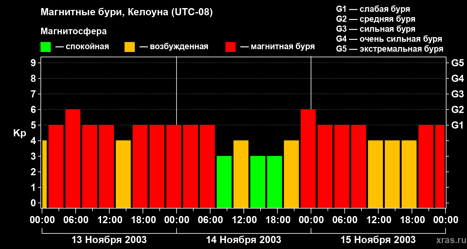 Магнитные бури в Келоуне в ноябре 2003 года