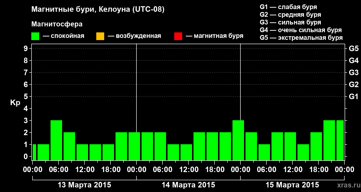 Магнитные бури в Келоуне 15 марта 2015 года