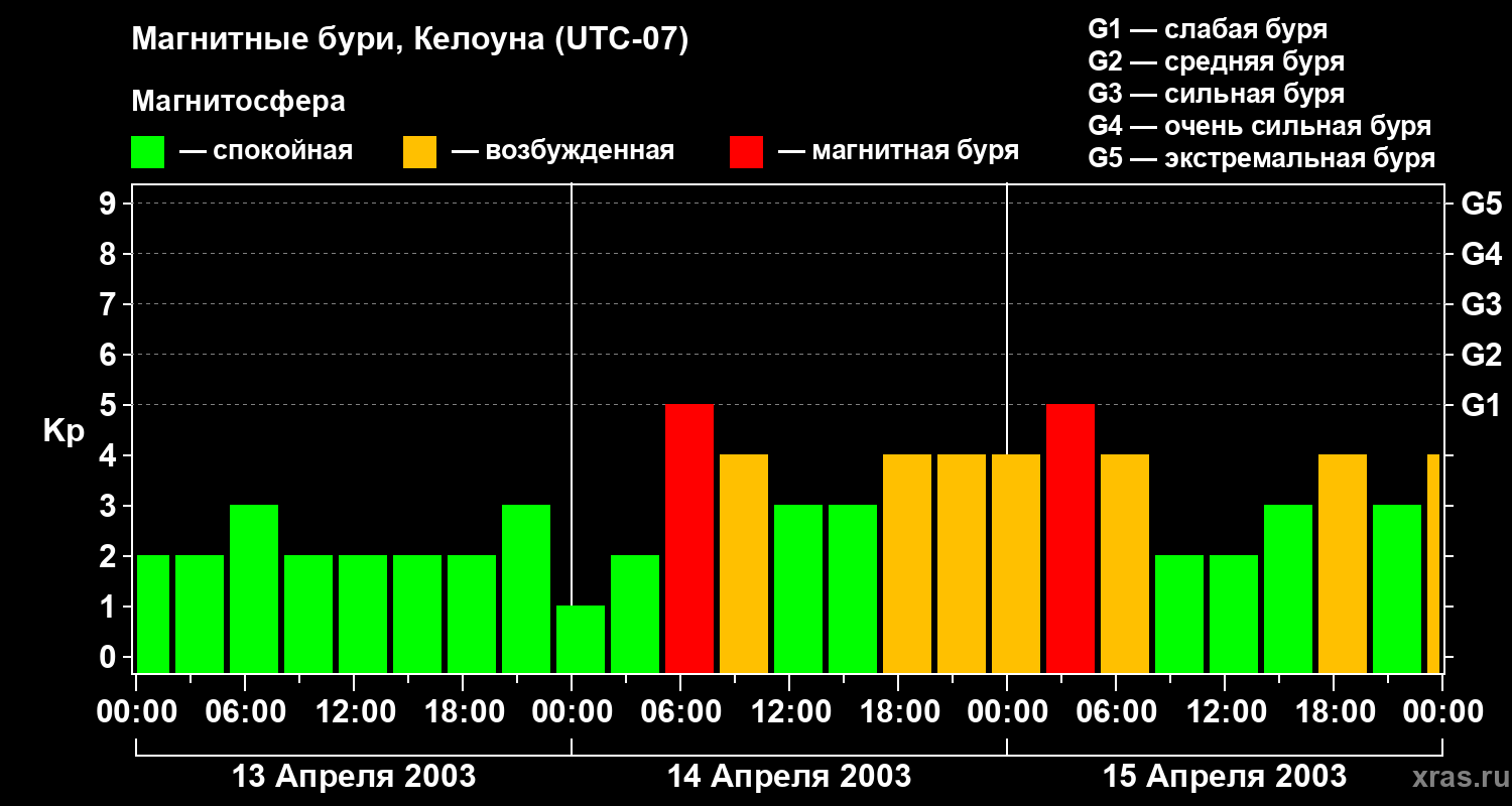 Магнитные бури в Келоуне — 15 апреля 2003 года