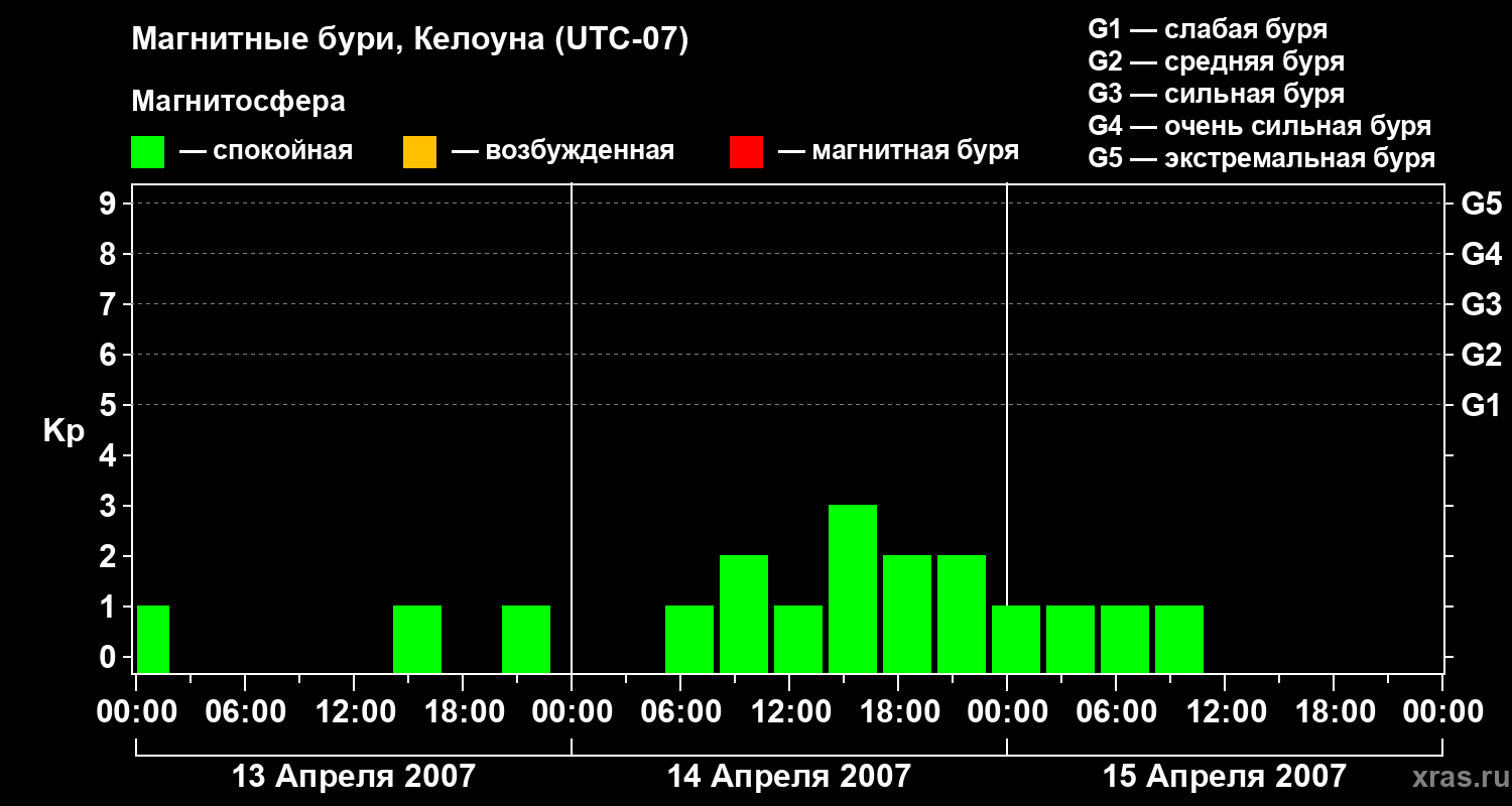 Магнитные бури в Келоуне — 15 апреля 2007 года