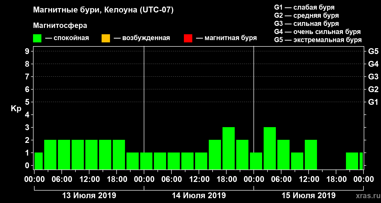 Магнитные бури в Келоуне — 15 июля 2019 года