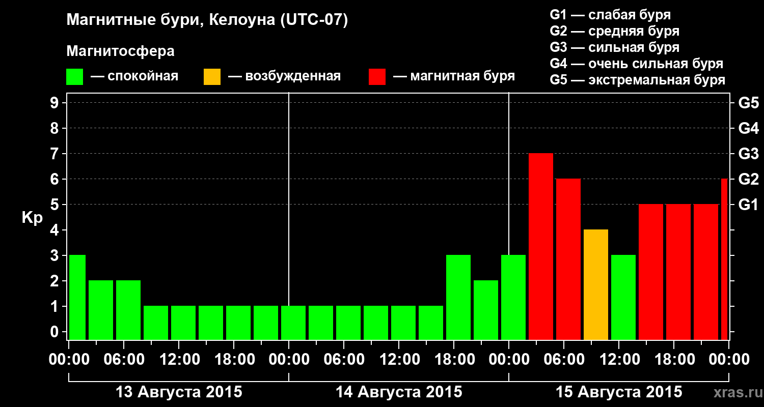 Магнитные бури в Келоуне — 15 августа 2015 года