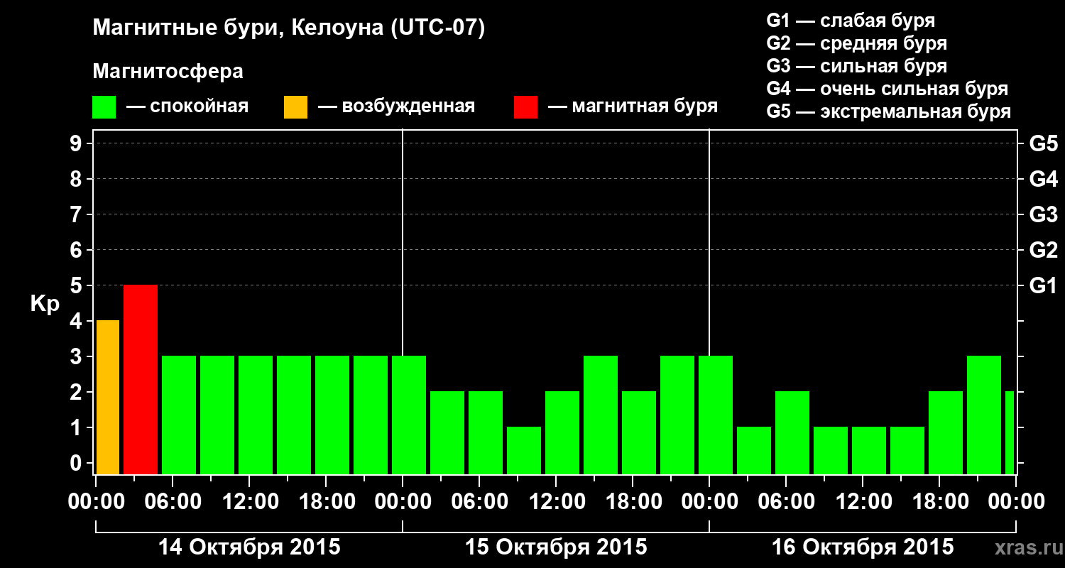 Магнитные бури в Келоуне — 16 октября 2015 года