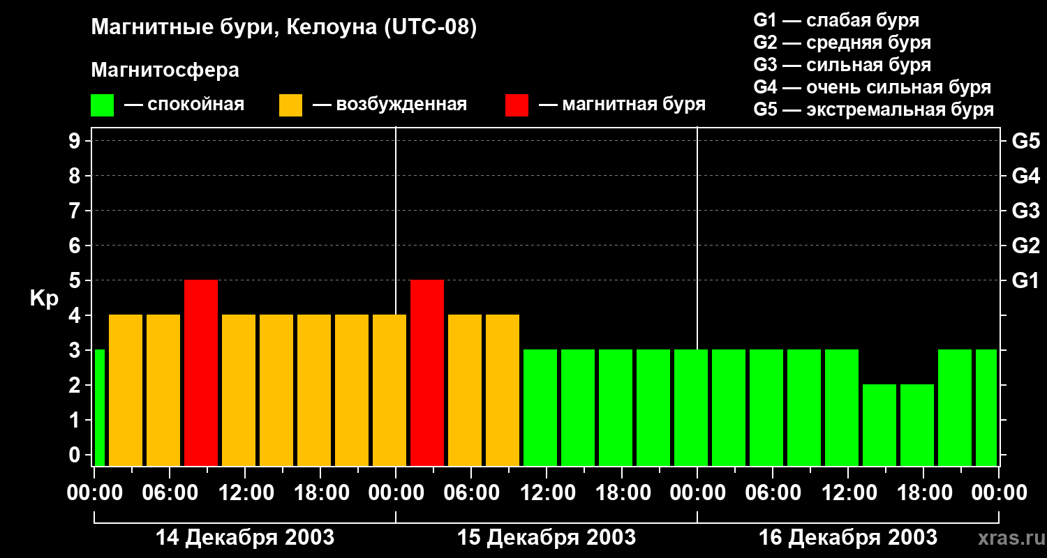 Магнитные бури в Келоуне — 16 декабря 2003 года