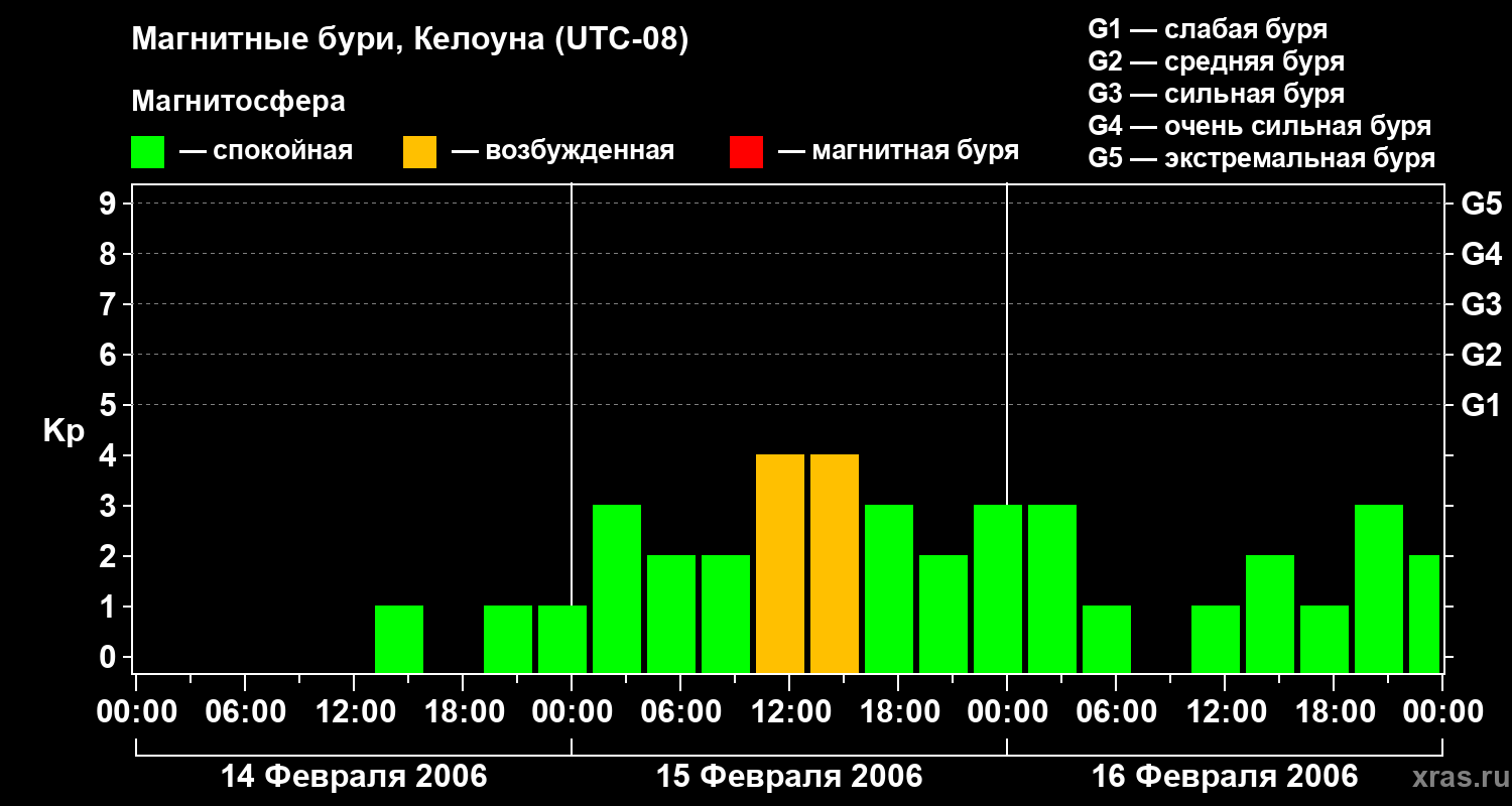 Магнитные бури в Келоуне — 16 февраля 2006 года