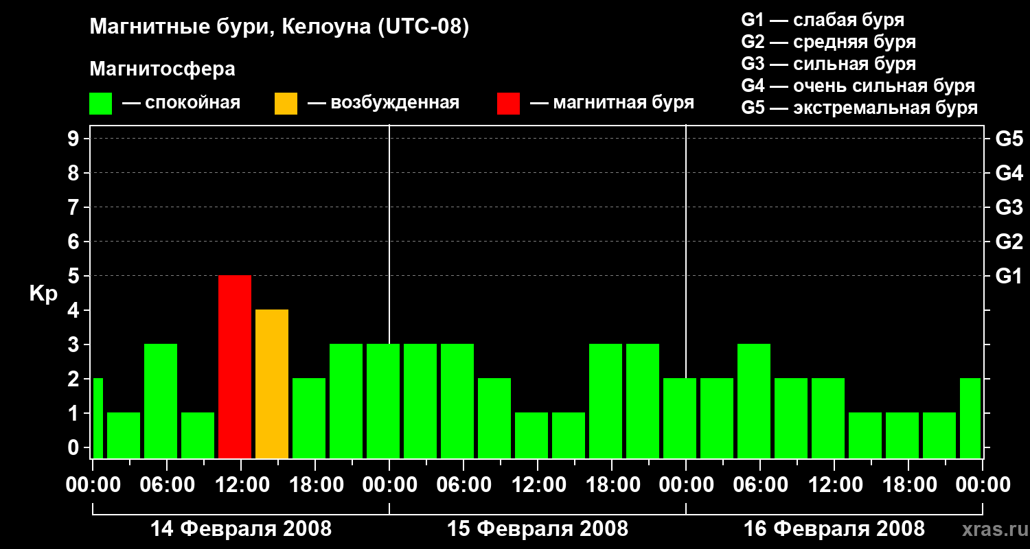 Магнитные бури в Келоуне 16 февраля 2008 года