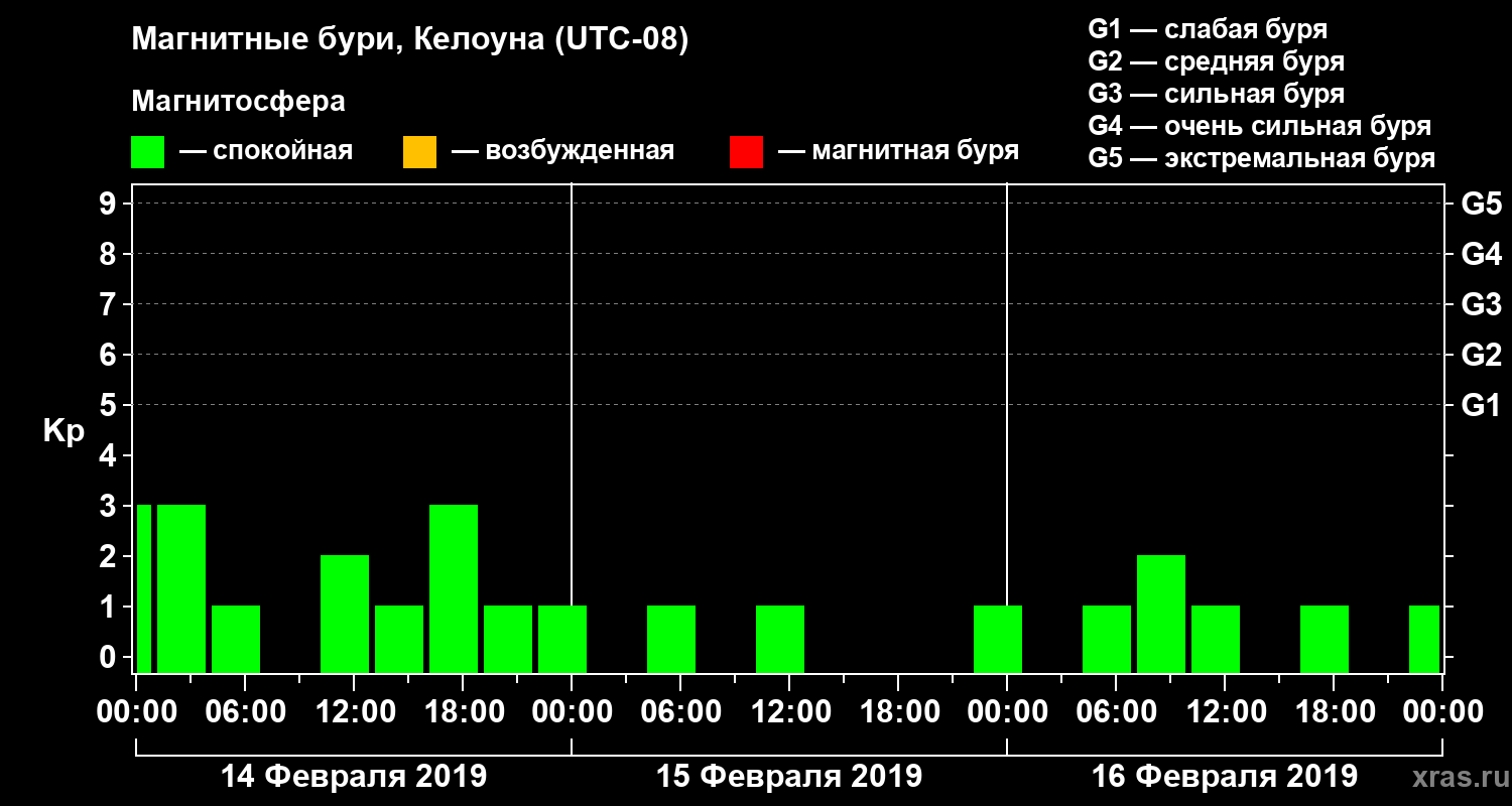 Магнитные бури в Келоуне 16 февраля 2019 года