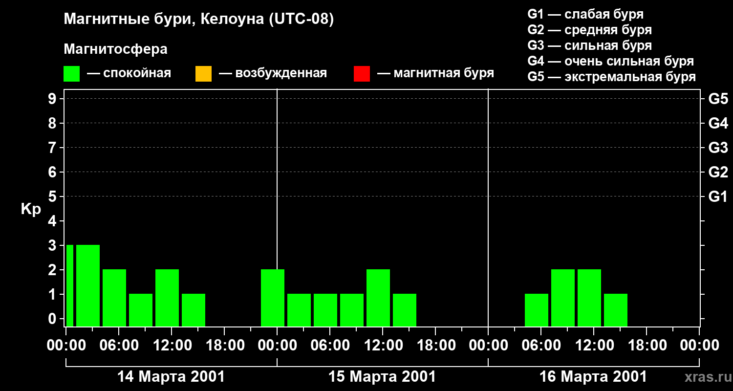 Магнитные бури в Келоуне — 16 марта 2001 года