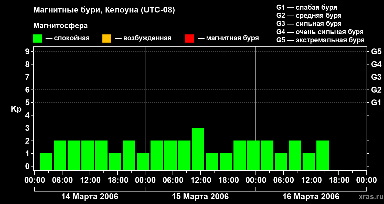 Магнитные бури в Келоуне — 16 марта 2006 года