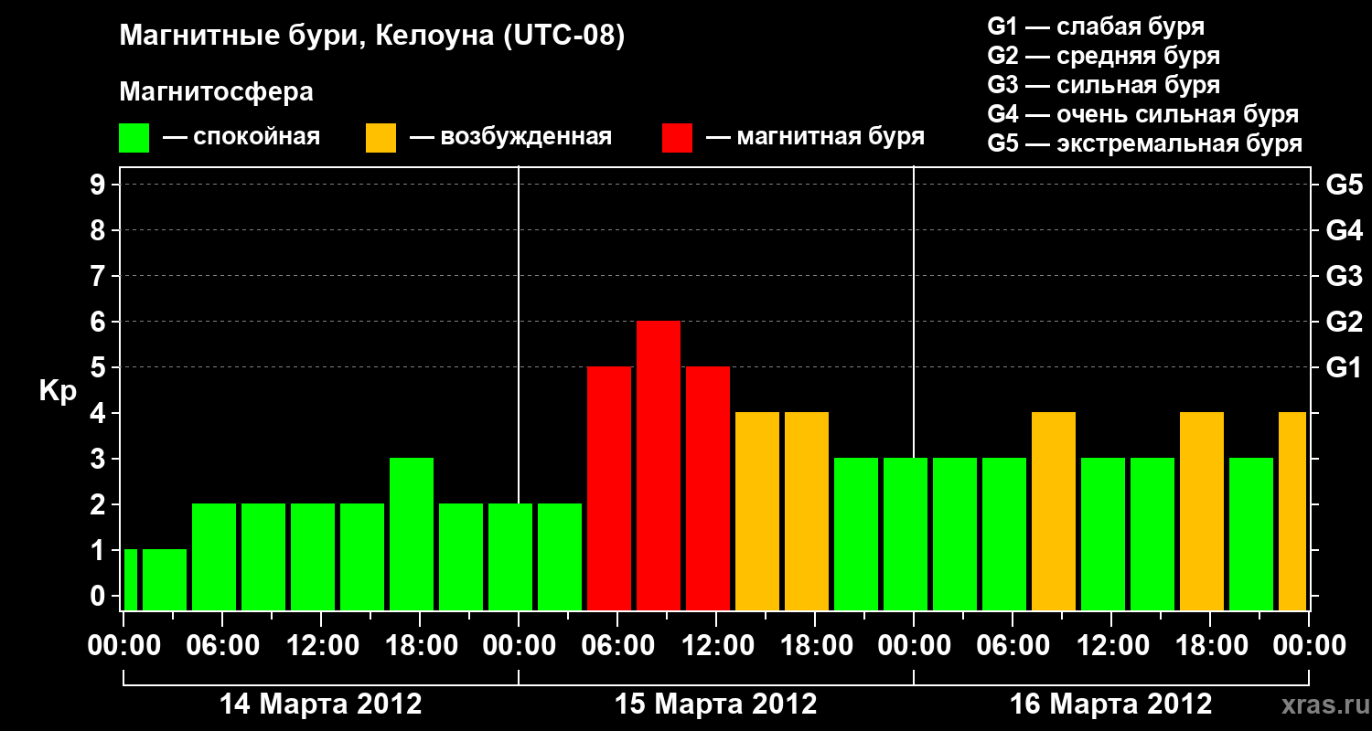 Магнитные бури в Келоуне — 16 марта 2012 года