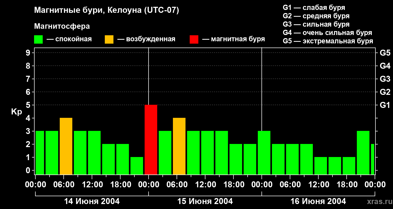 Магнитные бури в Келоуне — 16 июня 2004 года