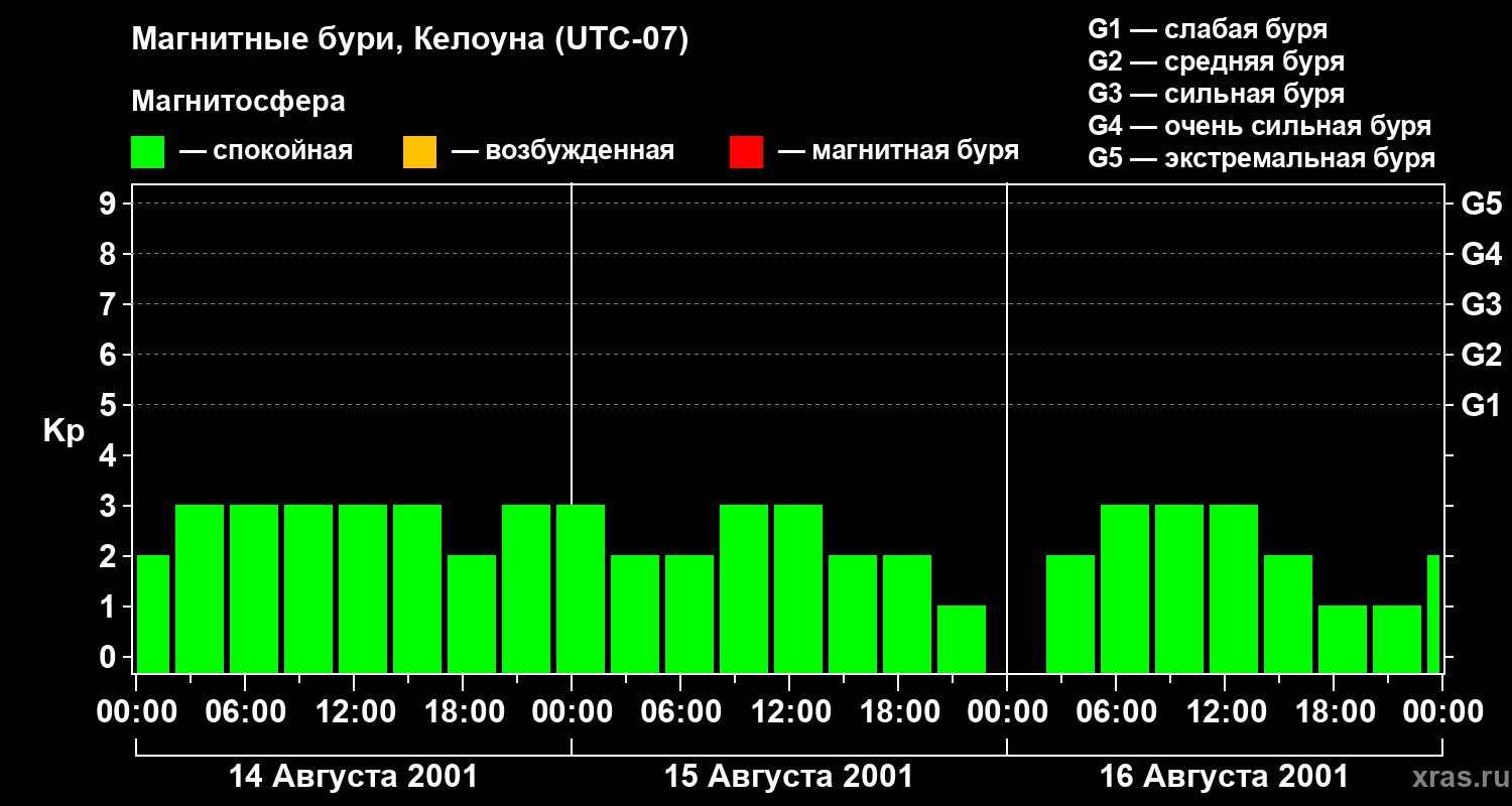 Магнитные бури в Келоуне — 16 августа 2001 года