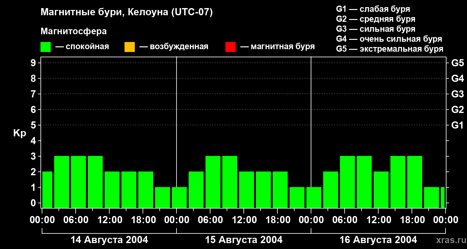Магнитные бури в Келоуне — 16 августа 2004 года