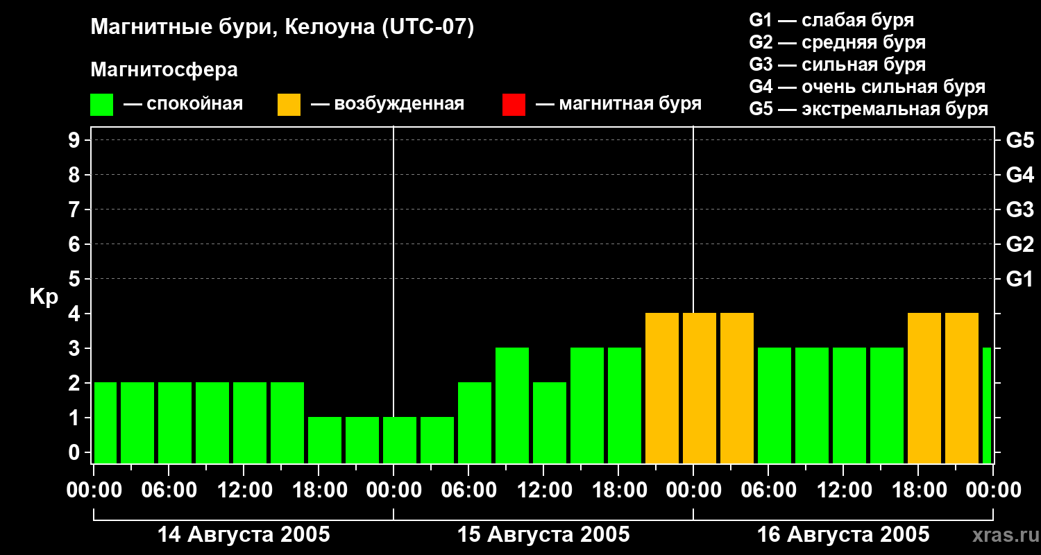 Магнитные бури в Келоуне — 16 августа 2005 года