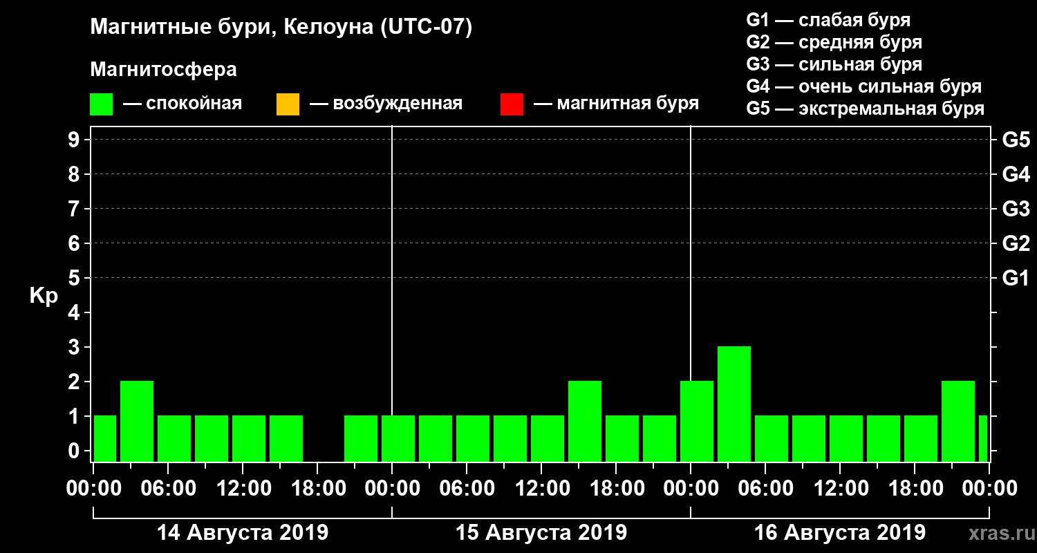 Магнитные бури в Келоуне — 16 августа 2019 года