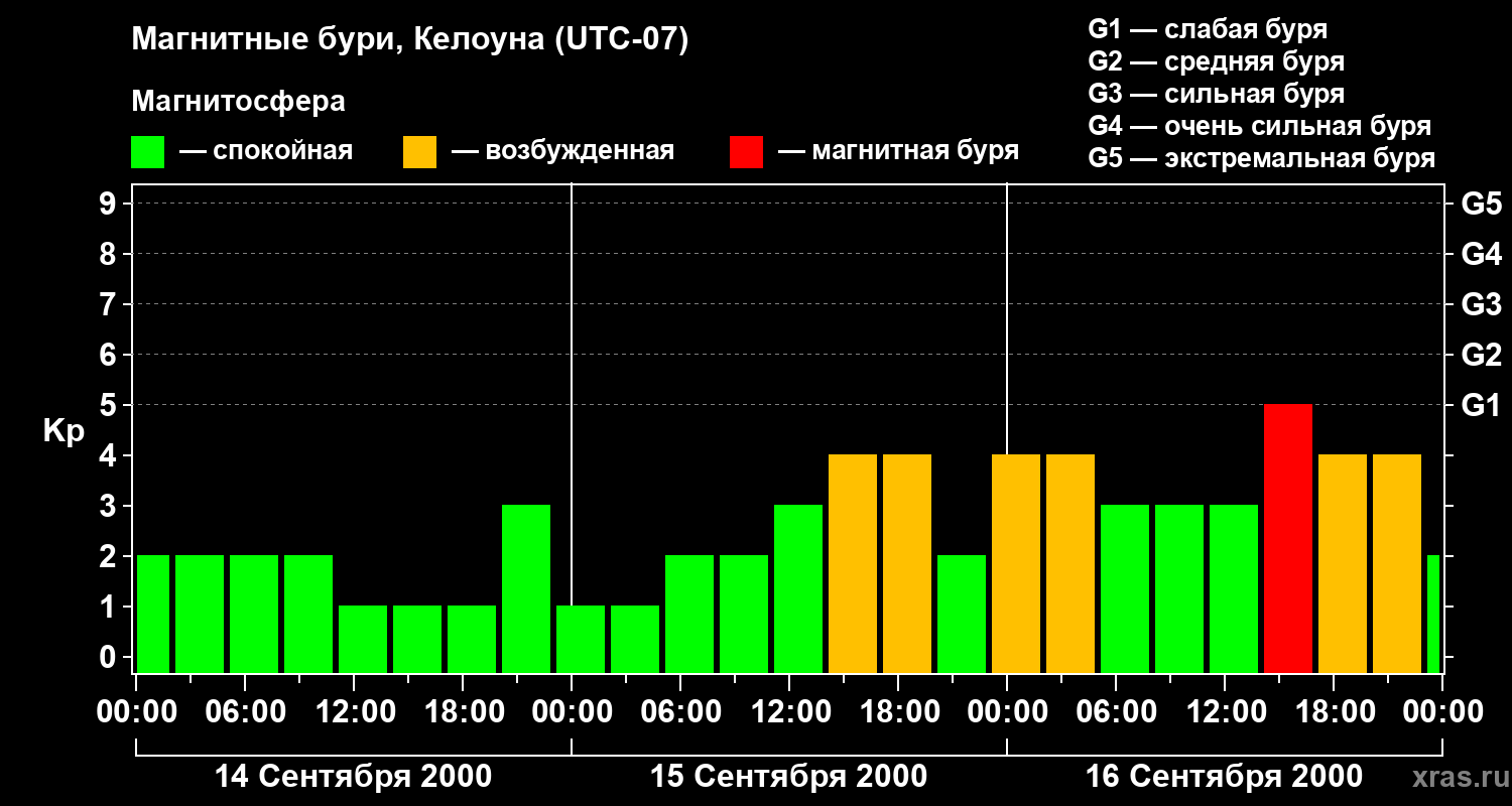 Магнитные бури в Келоуне 16 сентября 2000 года