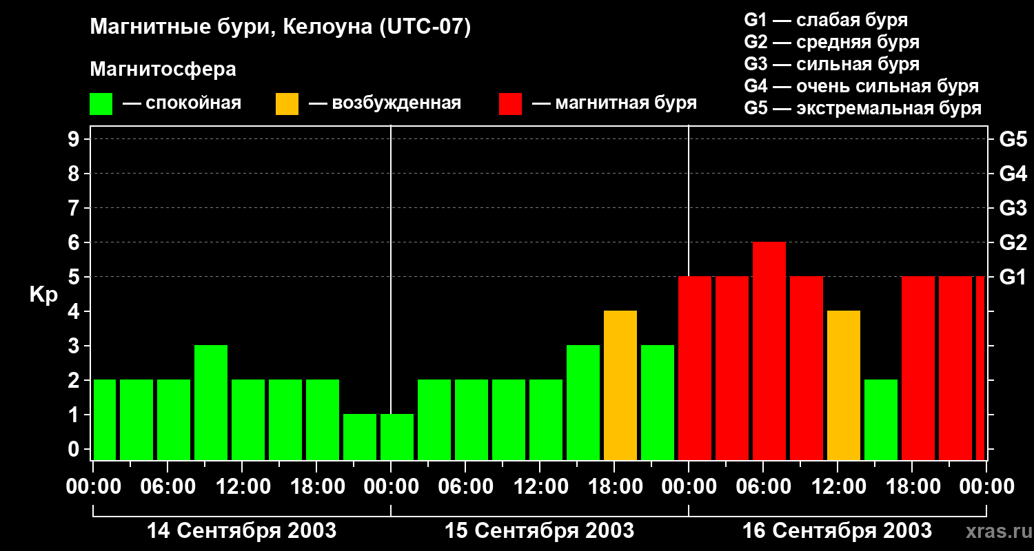 Магнитные бури в Келоуне 16 сентября 2003 года