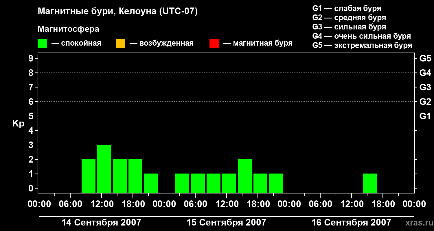 Магнитные бури в Келоуне 16 сентября 2007 года