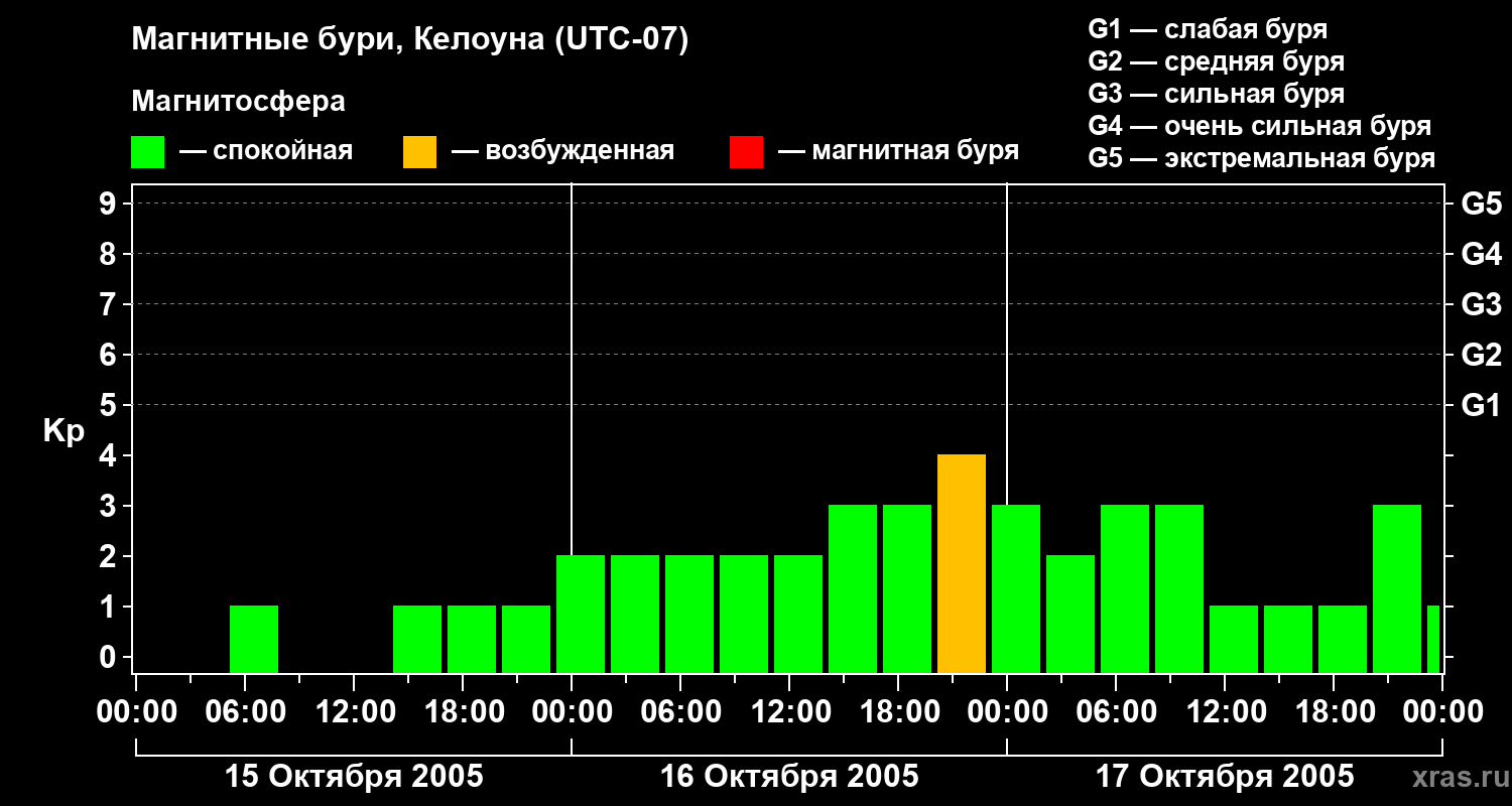 Магнитные бури в Келоуне — 17 октября 2005 года