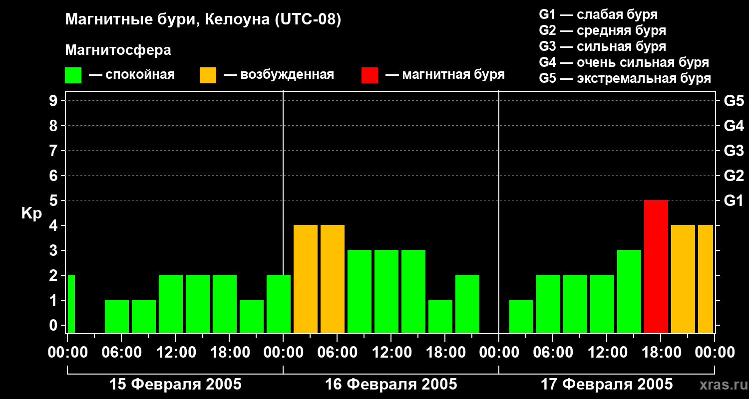 Магнитные бури в Келоуне — 17 февраля 2005 года