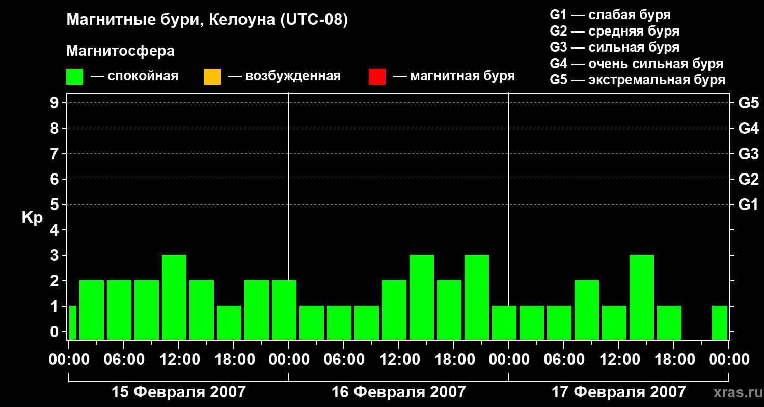 Магнитные бури в Келоуне 17 февраля 2007 года