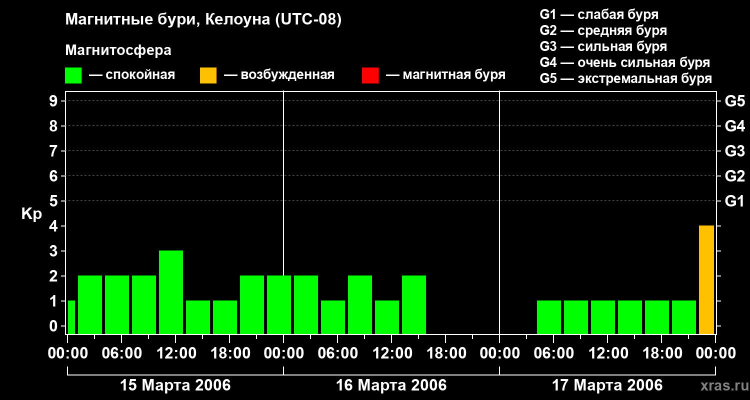 Магнитные бури в Келоуне — 17 марта 2006 года