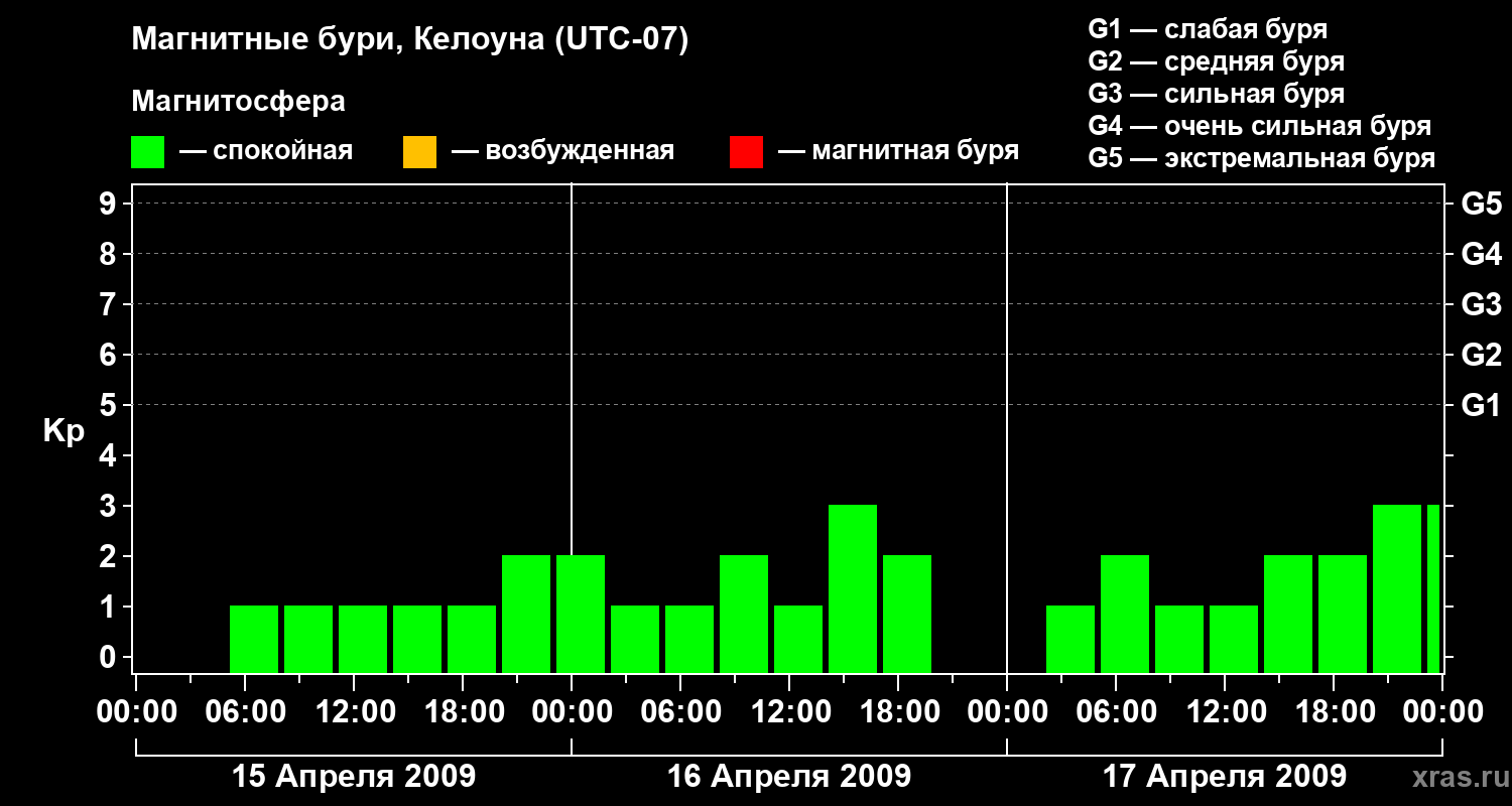 Магнитные бури в Келоуне — 17 апреля 2009 года