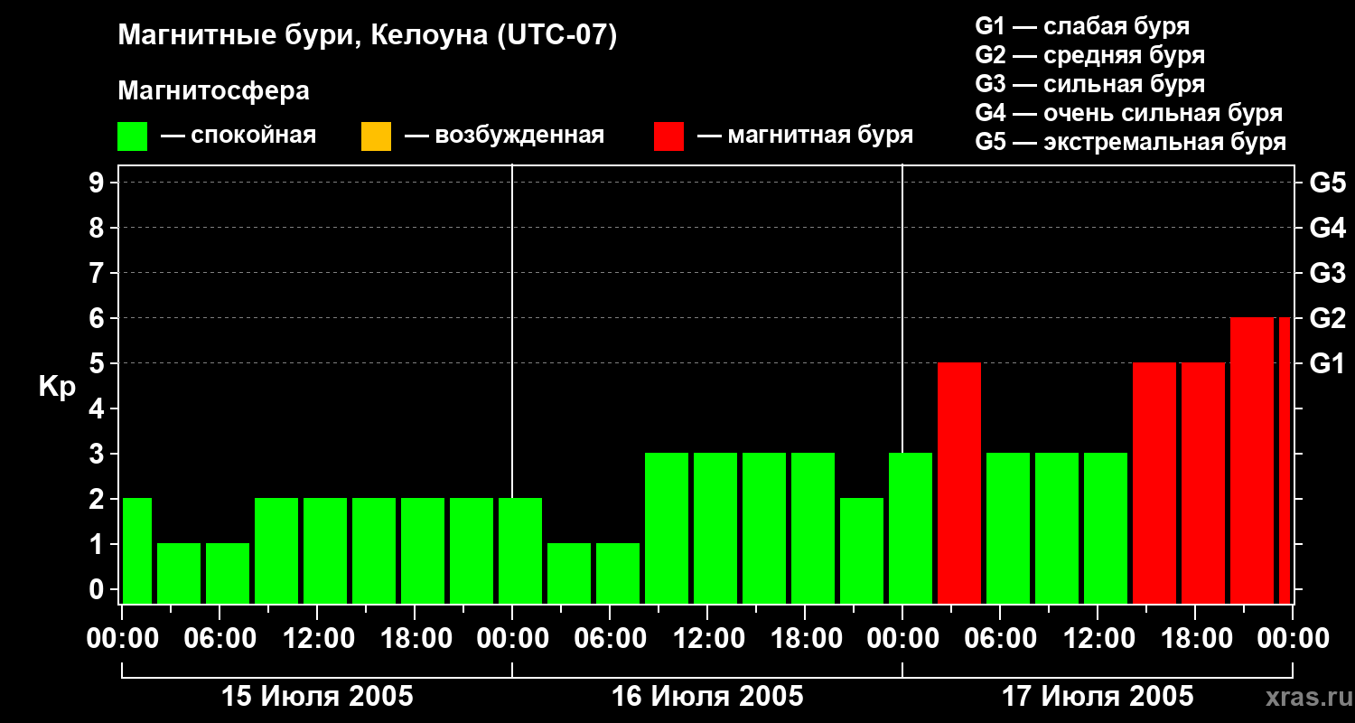 Магнитные бури в Келоуне — 17 июля 2005 года