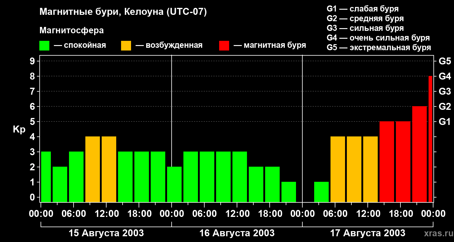 Магнитные бури в Келоуне — 17 августа 2003 года