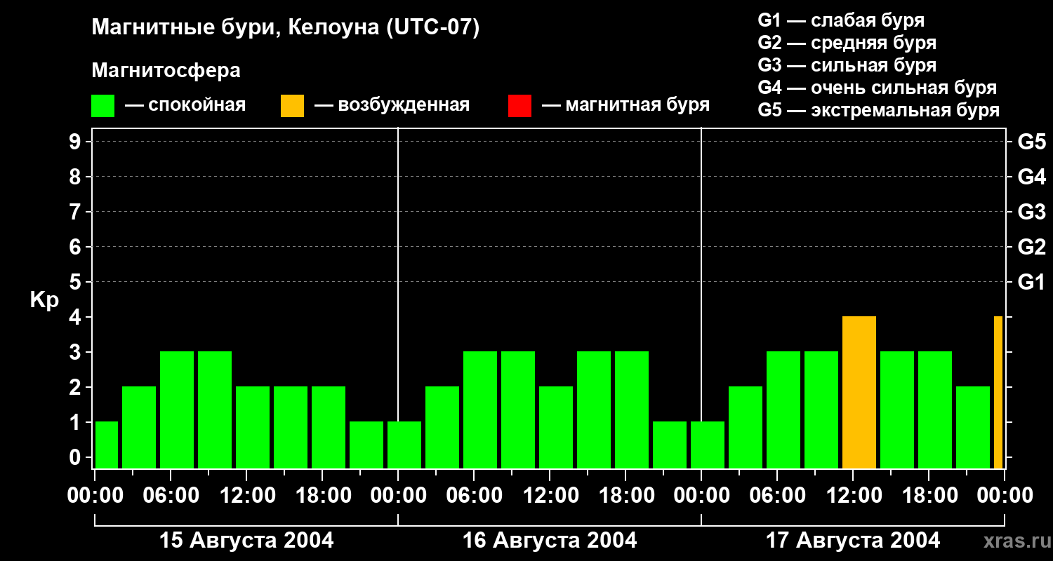 Магнитные бури в Келоуне — 17 августа 2004 года