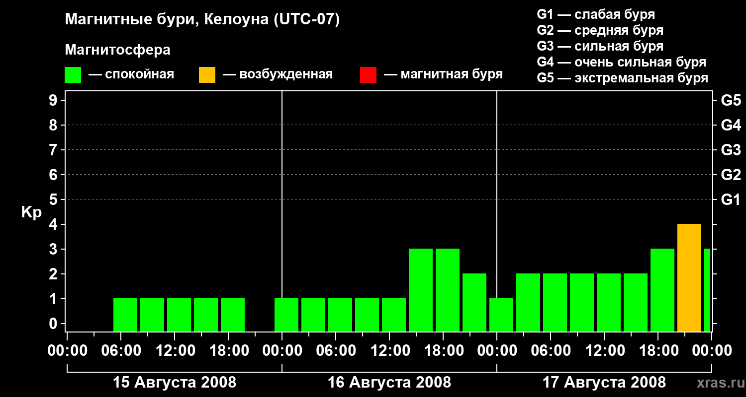 Магнитные бури в Келоуне — 17 августа 2008 года
