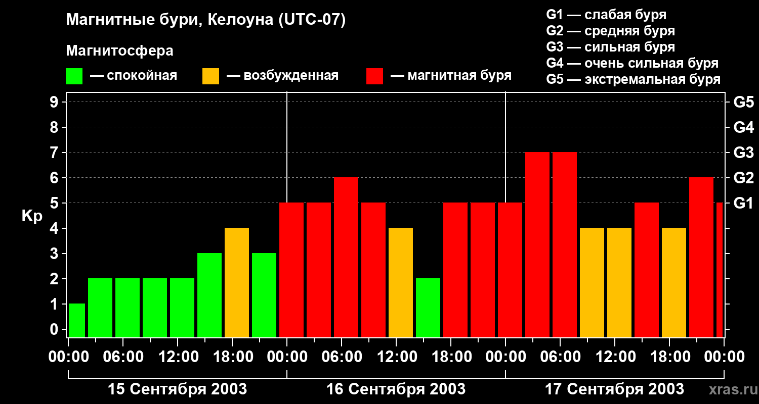 Магнитные бури в Келоуне 17 сентября 2003 года