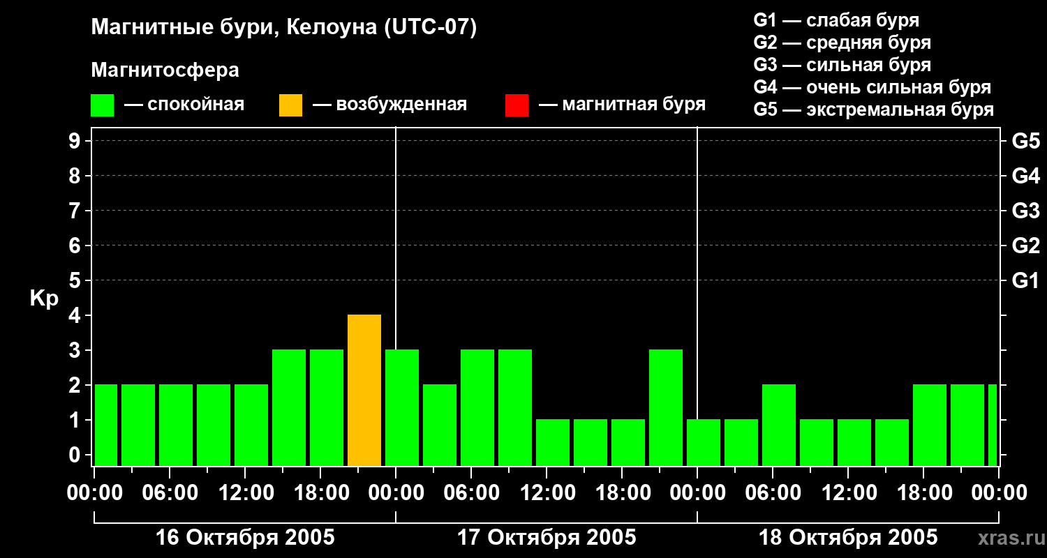 Магнитные бури в Келоуне — 18 октября 2005 года