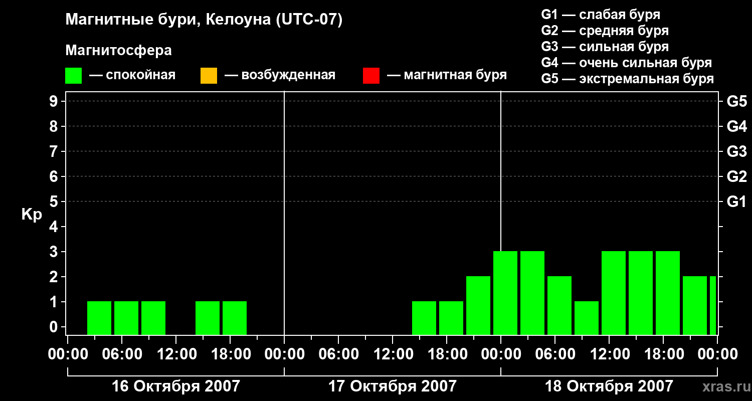 Магнитные бури в Келоуне — 18 октября 2007 года