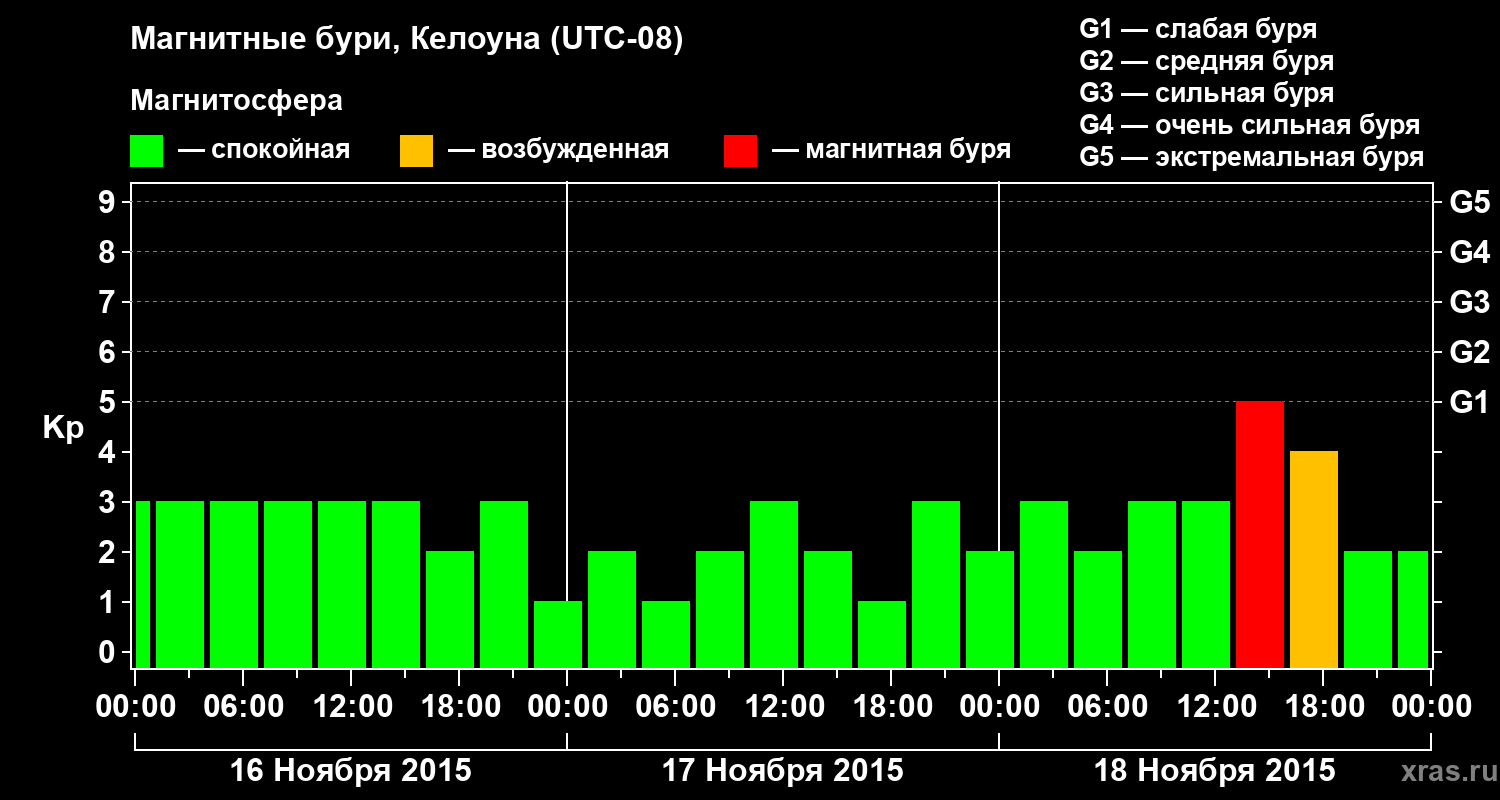 Магнитные бури в Келоуне — 18 ноября 2015 года