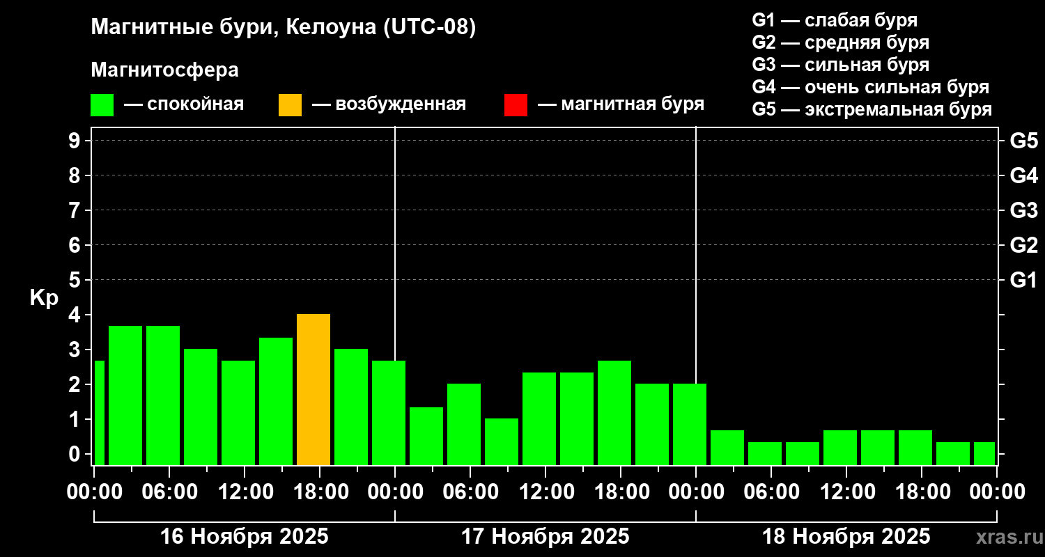 Магнитные бури в Келоуне 18 ноября 2025 года