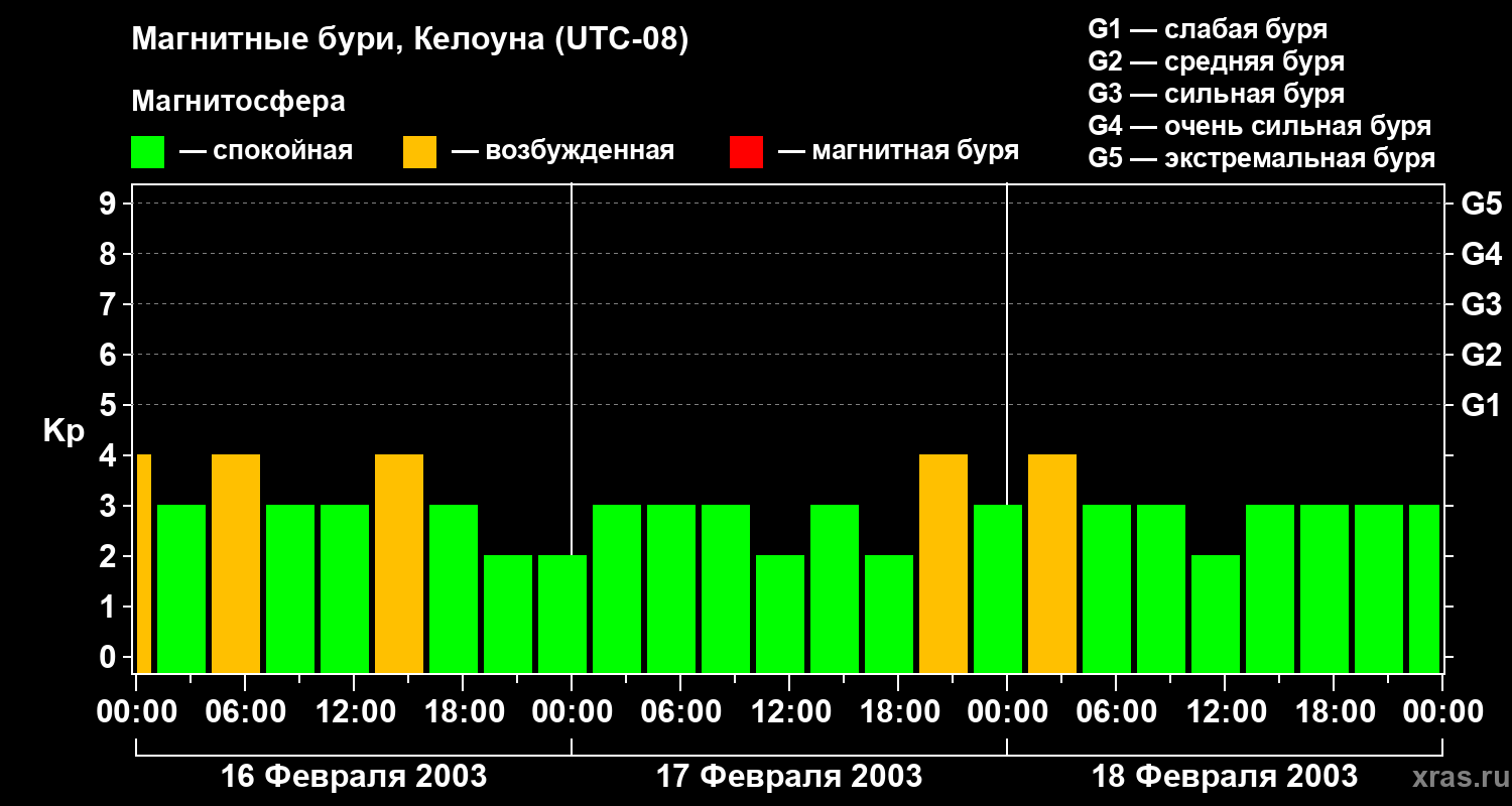Магнитные бури в Келоуне — 18 февраля 2003 года