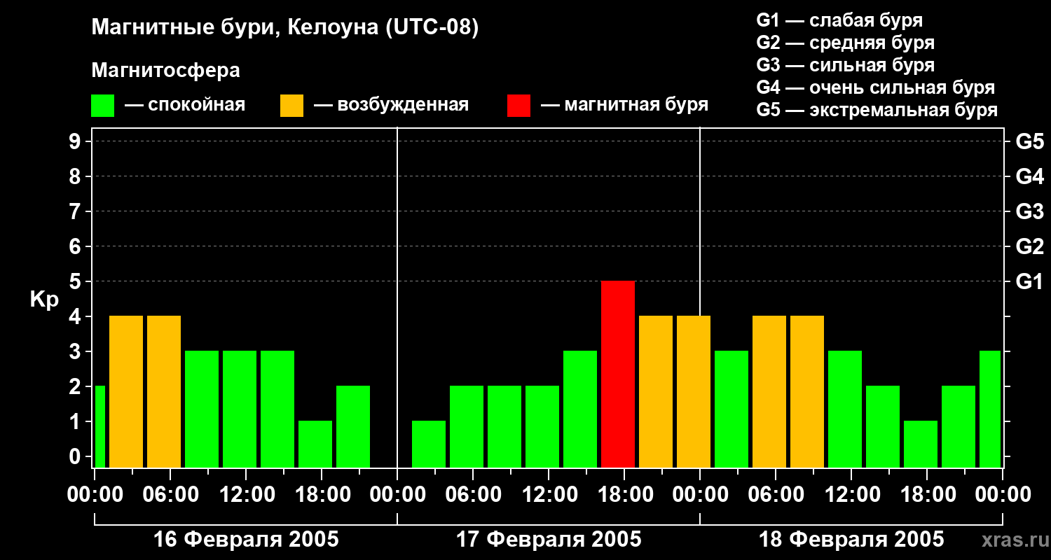 Магнитные бури в Келоуне 18 февраля 2005 года