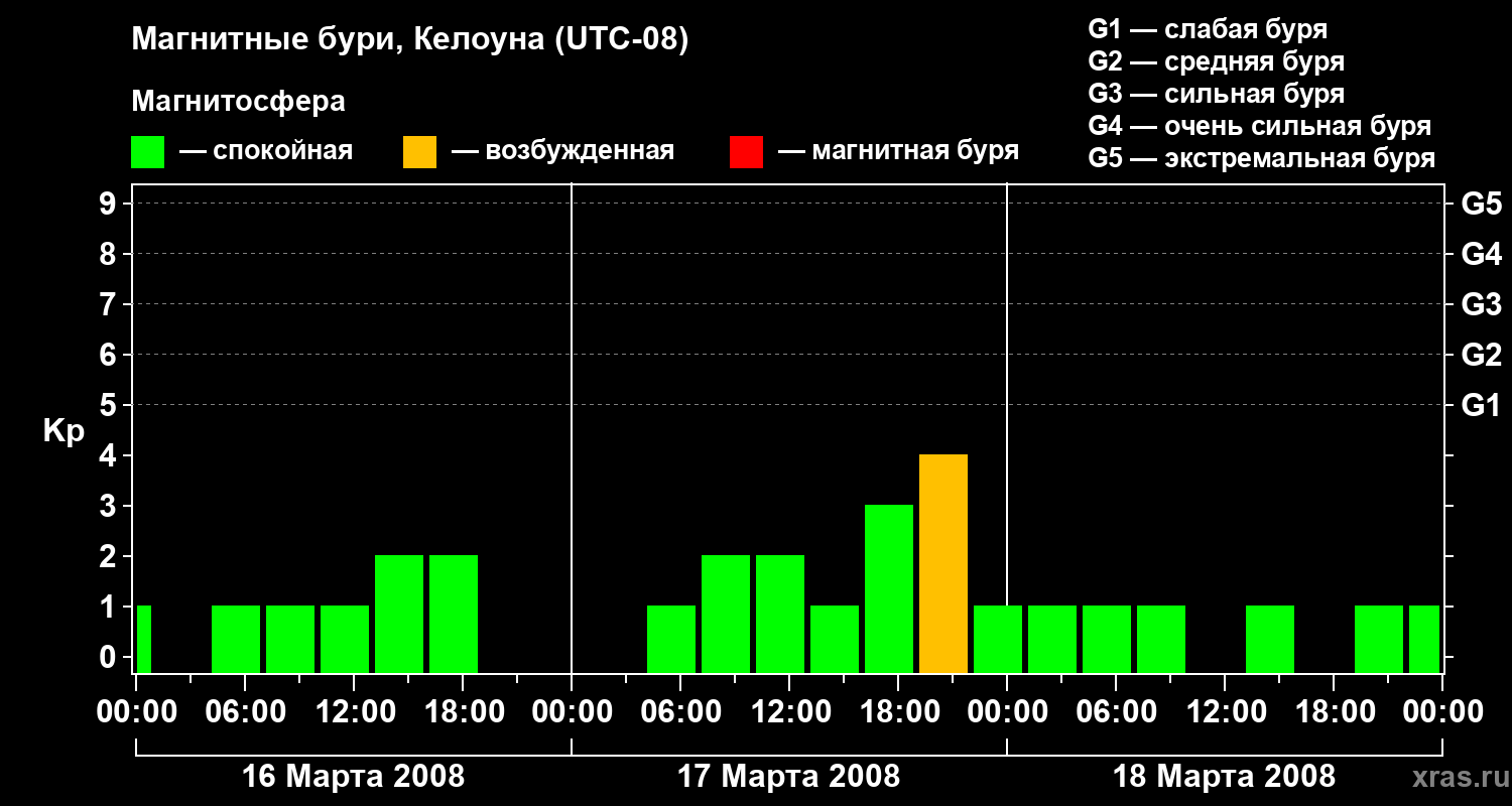 Магнитные бури в Келоуне — 18 марта 2008 года