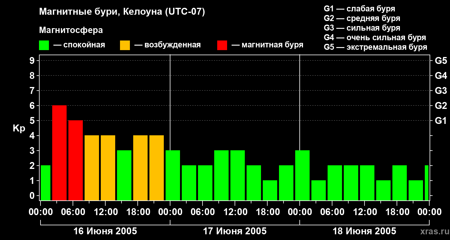 Магнитные бури в Келоуне — 18 июня 2005 года
