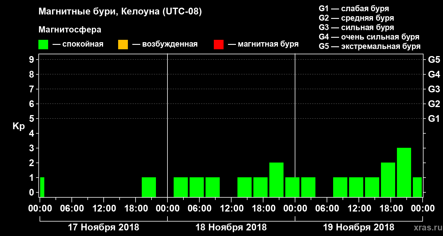 Магнитные бури в Келоуне — 19 ноября 2018 года