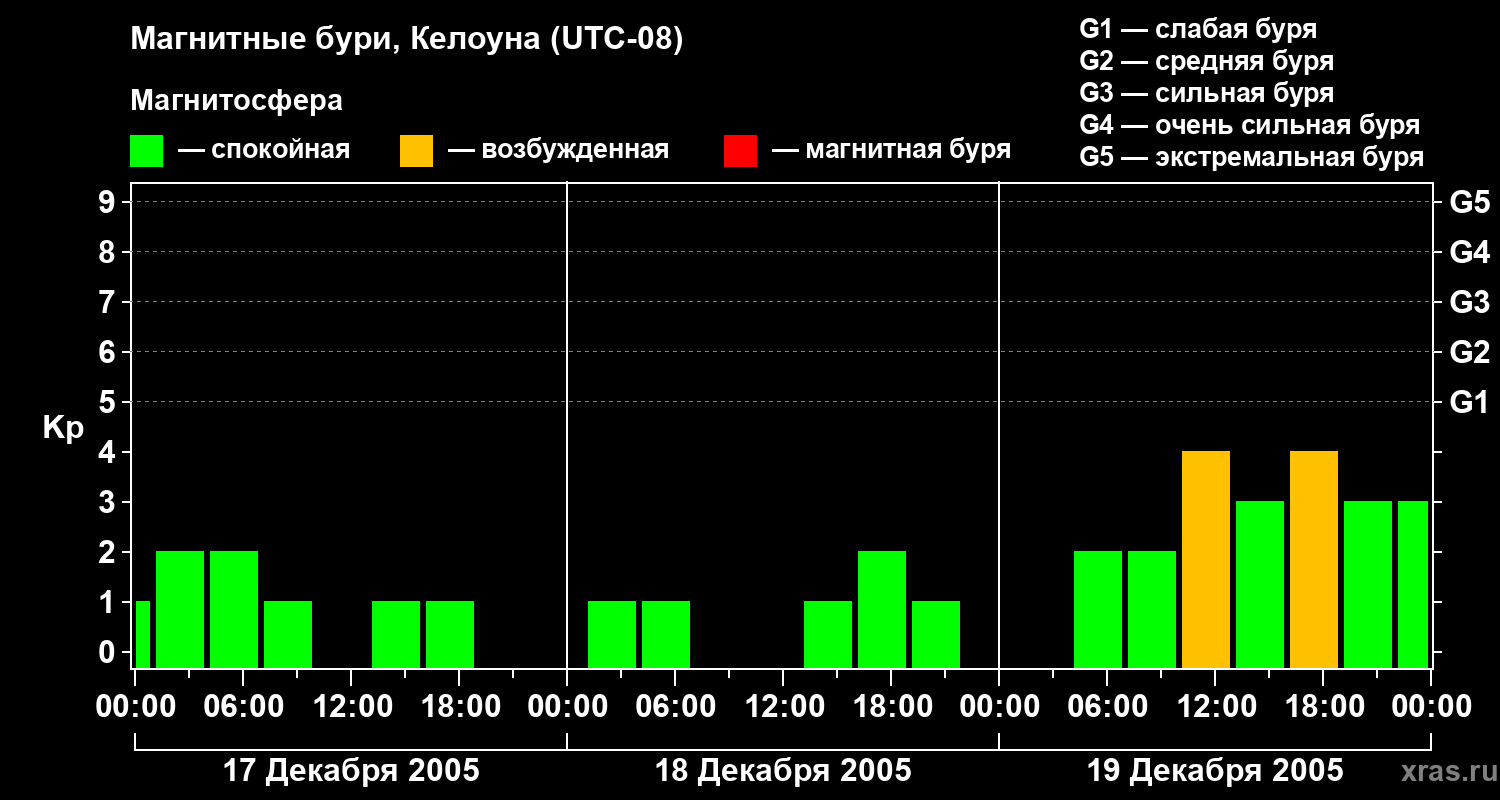 Магнитные бури в Келоуне — 19 декабря 2005 года