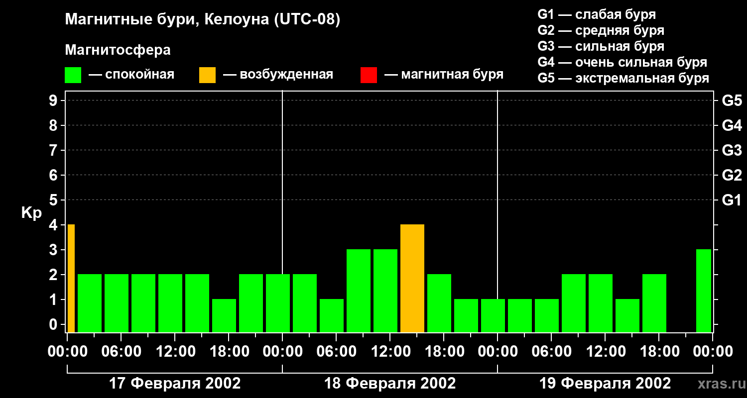Магнитные бури в Келоуне — 19 февраля 2002 года