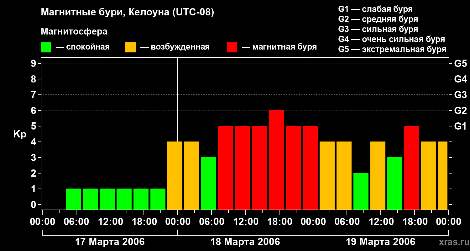 Магнитные бури в Келоуне — 19 марта 2006 года