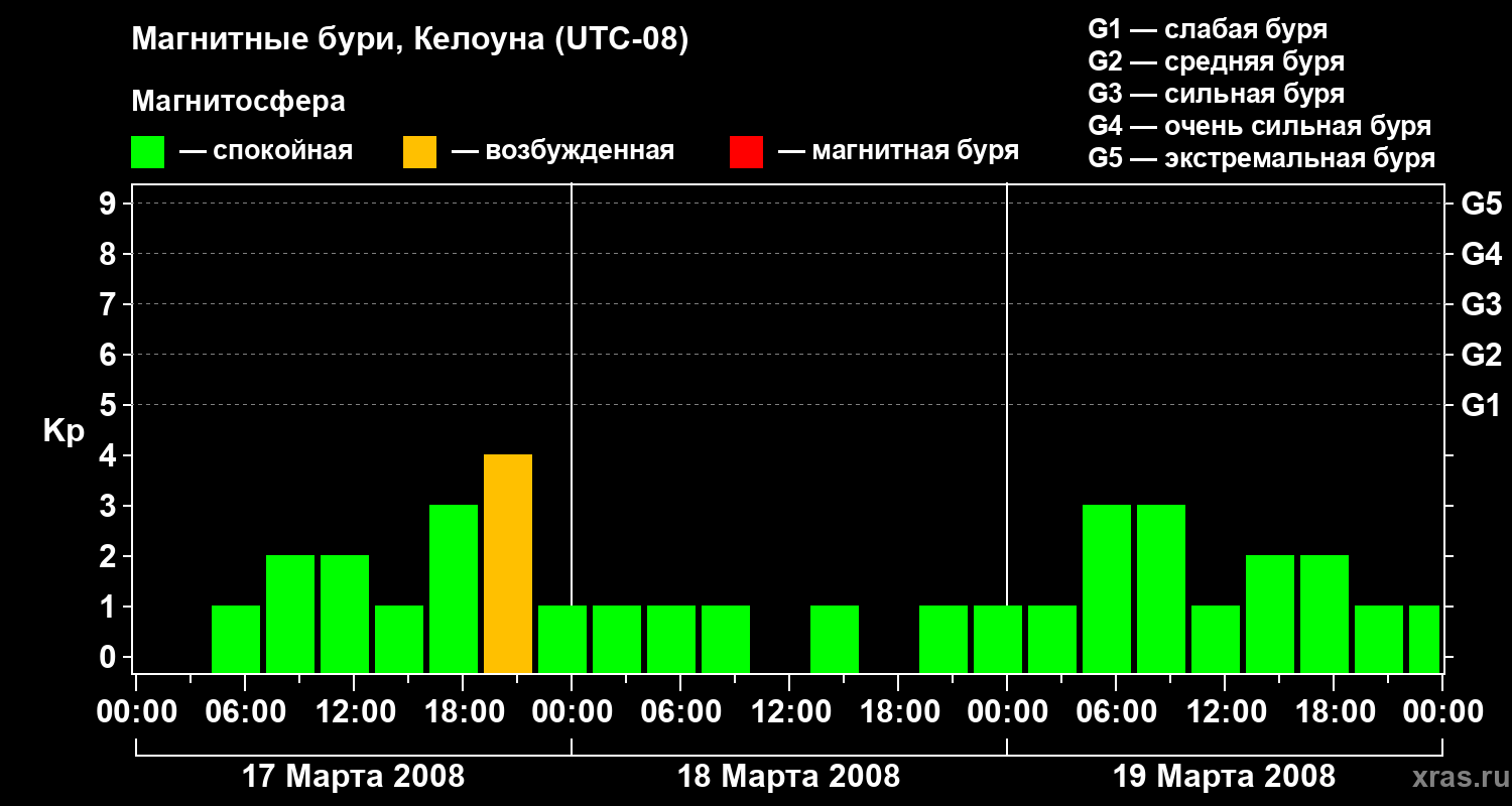 Магнитные бури в Келоуне — 19 марта 2008 года