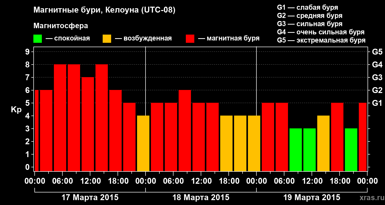 Магнитные бури в Келоуне — 19 марта 2015 года