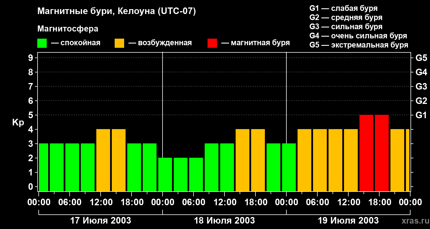 Магнитные бури в Келоуне — 19 июля 2003 года