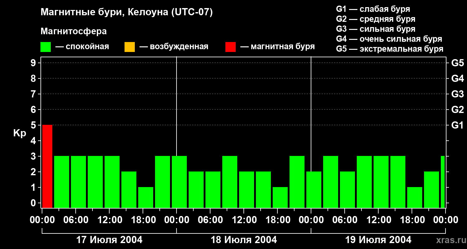 Магнитные бури в Келоуне — 19 июля 2004 года