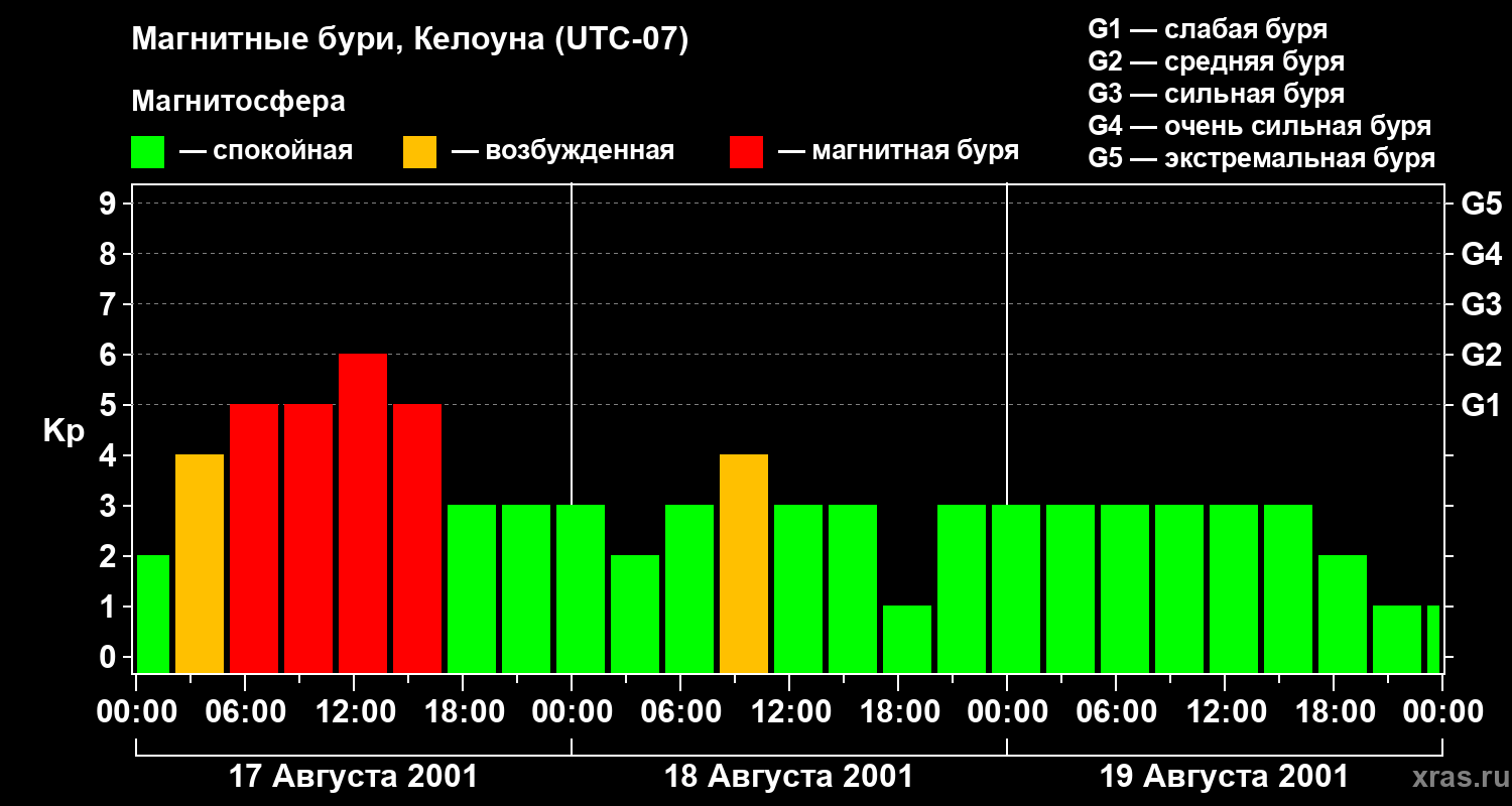 Магнитные бури в Келоуне — 19 августа 2001 года
