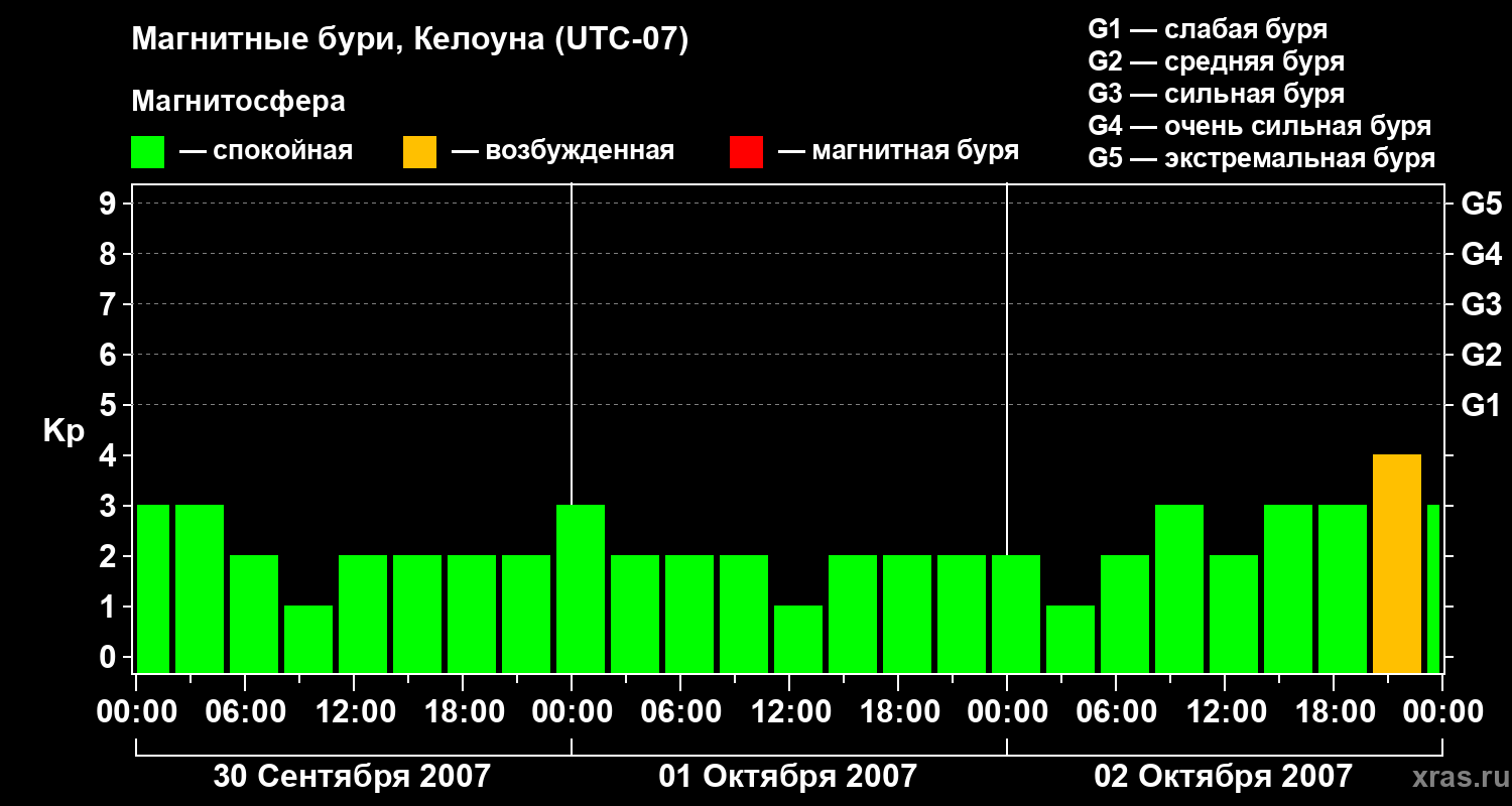 Магнитные бури в Келоуне — 2 октября 2007 года